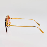 The classic aviator silhouette receives a contemporary update with the Seren Aviator Sunglasses. Expertly crafted from luxurious 22 carat yellow-gold Japanese titanium and featuring gradient red lens. Adjustable nose pads offer a tailored fit by allowing bespoke positioning for enhanced comfort. They are universal and particularly suited for those with a lower nose bridge, as they provide custom support. Details -Country of origin: Japan -100% UV protected lenses -Titanium frame with titanium temples -sku:LFL1539C6SUN Size & Fit 62mm lens width 14mm bridge width 140mm temple length