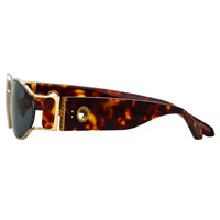 Shelby brings statement energy as a key piece for the season. The sunglasses are spun from 22 carat light gold plated titanium which sweeps back from the lens to reveal a cat eye silhouette within the frame. Paired with the Gold Metal Rectangle Chain Details -100% UV protected solid lenses -Acetate frame with acetate temples -Titanium Made in Japan -sku:LFL1157C2SUN Size & Fit 62mm lens width 2mm bridge width 145mm temple length