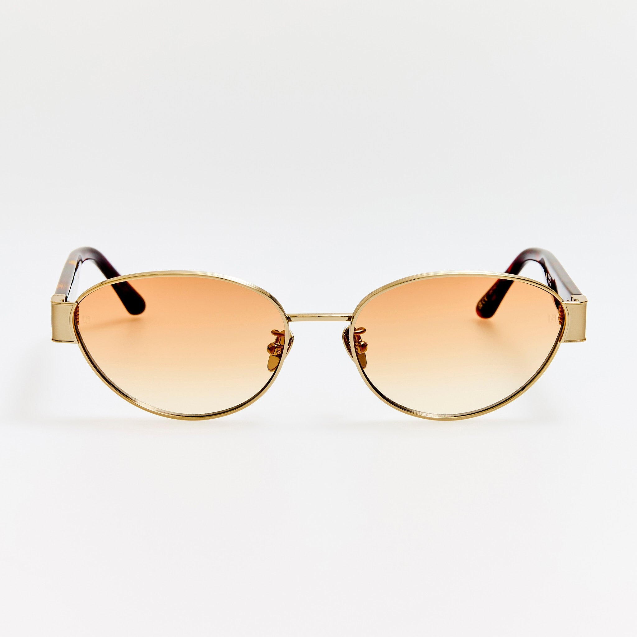 The Sheri cat eye frame features a chunky 22k gold plated pure Japanese titanium structure fitted with camel gradient lenses, offering full UV protection. The temples are crafted from dark tortoiseshell Italian acetate with gold accents , adding a luxurious touch. The frame is fitted with adjustable titanium nose pads that offer a tailored fit by allowing bespoke positioning for enhanced comfort. Details -Country of origin: Japan -100% UV protected gradient lenses -Acetate and titanium frame with titanium temples -sku: LFL1656C2SUN Size & Fit 56mm lens width 17mm bridge width 145mm temple length