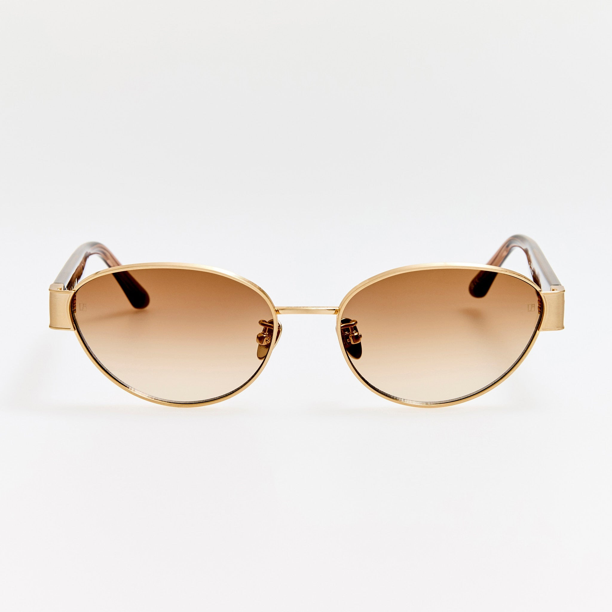 The Sheri cat eye frame features a chunky matt champagne pure Japanese titanium structure fitted with mocha gradient lenses, offering full UV protection. The temples are crafted from brown Italian acetate with gold accents , adding a luxurious touch. The frame is fitted with adjustable titanium nose pads that offer a tailored fit by allowing bespoke positioning for enhanced comfort. Details -Country of origin: Japan -100% UV protected gradient lenses -Acetate and titanium frame with titanium temples -sku: LFL1656C3SUN Size & Fit 56mm lens width 17mm bridge width 145mm temple length