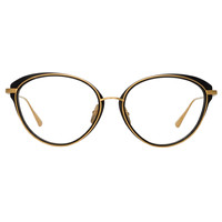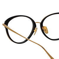 The Song pairs finely polished black acetate rims with a 22 carat yellow gold plated Japanese titanium framework.. They are completed with adjustable nose pads for superior comfort. Keep your frames protected in the LINDA FARROW travel case. Details -Optical lens free from prescription -Acetate frame with titanium temples -Titanium Made in Japan sku:LFL1445C4OPT Size & Fit 59mm lens width 17mm bridge width 146mm temple length