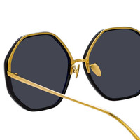 Imbued with a sense of exotic glamour inspired by a Far East metropolis, these oversized Linda Farrow sunglasses pair black Italian acetate with 18-22 carat gold-plated titanium. Details -100% UV protected ZEISS lenses -Acetate and titanium frame with titanium temples -Made in Japan -sku: LFL901C1SUN Size & Fit 59.5mm lens width 17.5mm bridge width 140mm temple length