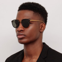 The Calthorpe takes its name from the location of the brand's HQ on Calthorpe Street in London. Part of the core collection, the style employs a signature LINDA FARROW design language. Finely sculpted recycled black acetate rims are paired with a delicate 22 carat yellow gold plated titanium frame work which runs along the inner brown and into sleek tapered temples. Fitted with solid grey ZEISS technology lenses offer anti-glare and 100% UV protection. Adjustable nose pads allow for a tailored fit. Details -100% UV protected ZEISS lenses -Acetate frame with titanium temples -Made in Japan -sku: LFL251C13SUN Size & Fit 51mm lens width 20mm bridge width 145mm temple length