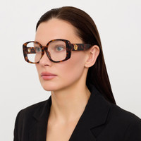 This product is a limited edition of 110. The edition number is printed on the inside of the temple #/110. Crafted from rich Italian acetate in dark tortoise shell, this oversized optical frame is paired with 22 carat yellow-gold-plated titanium hardware to deliver a timeless yet modern design. The sculpted acetate nose pads are seamlessly integrated to offer both comfort and visual harmony. Details -Country of origin: Japan -Optical lens free from prescription -Acetate frame with acetate temples -sku:LFL1478C6OPT Size & Fit 59mm lens width 16mm bridge width 140mm temple length