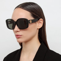 Experience ultimate style and comfort with the Venus Oversize Sunglasses in Black. Made from high quality acetate with gold eyelet accents and laminated nose pads, these sunglasses offer a sleek and modern look. In addition, the gray solid lenses provide optimal sun protection for your eyes. Upgrade your accessory game with these chic sunglasses. Details -Country of origin: Japan -100% UV protected solid lenses -Acetate frame with acetate temples -Acetate Made in Italy -sku:LFL1478C1SUN