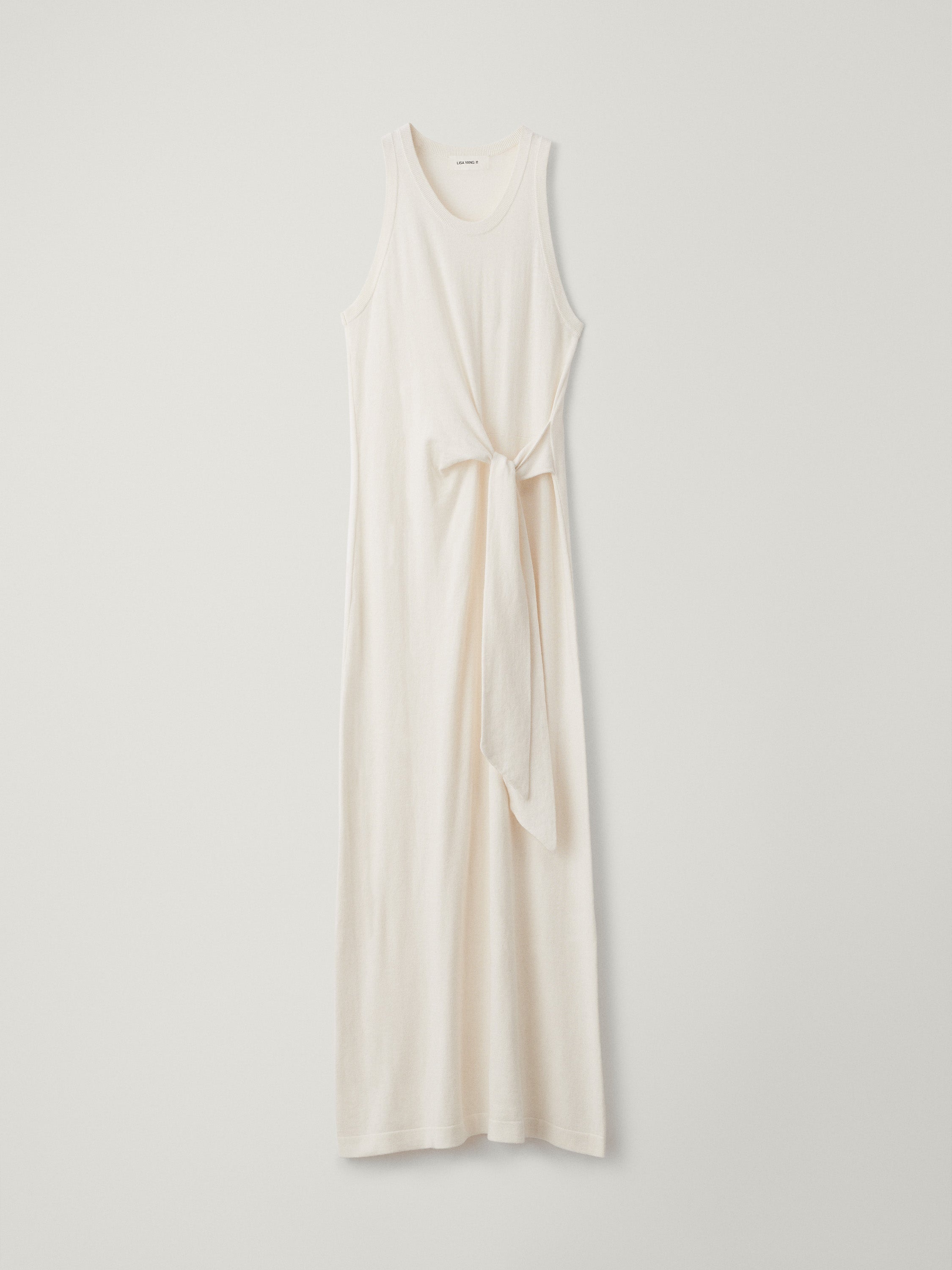 An asymmetrical statement piece, the Angeline dress is crafted in our fine knit cotton cashmere composition with a technical, one-piece construction. The regular fit, figure-skimming silhouette features a round neck, a tie knot detail that creates a chic drape along the front, a maxi skirt with a tubular hem and ribbed trims. DETAILS Knit type: Cotton Cashmere Gauge: 16 Weight: 270g Composition: 70% cotton, 30% cashmere SIZE GUIDE * European sizing * Designed for a regular fit * The model is 177 cm/5’9.5” tall and wears a size 1 Our sizes: Size 0: XS Size 1: S-M Size 2: M-L