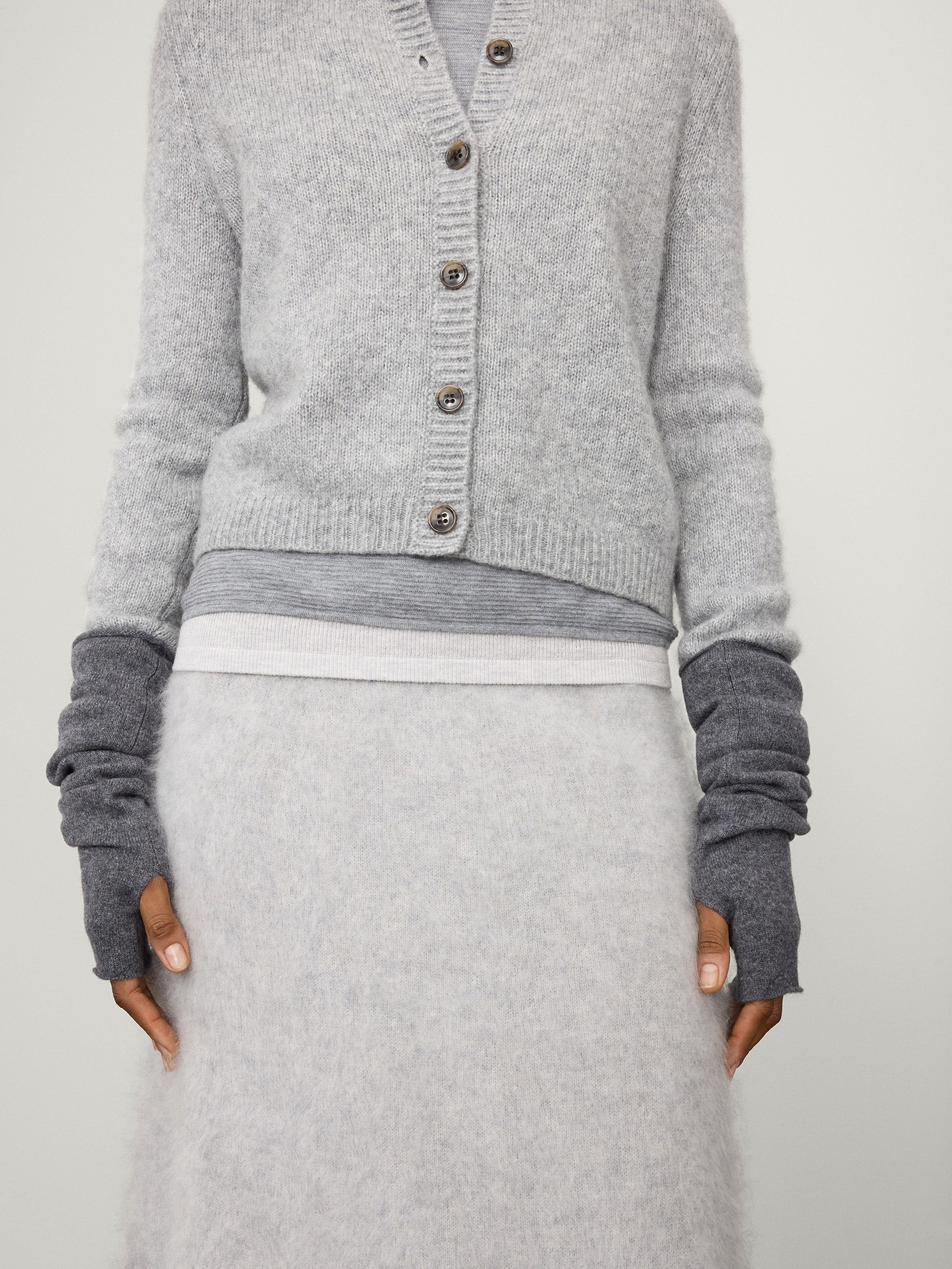 A subtle winter accent, the Aspen arm warmers are crafted in plain knit, mid-weight cashmere that feels both soft and soothing. The extended sleeves drape beautifully at the wrists and are detailed with thumb holes and a gently rolled edge. DETAILS Knit type: Plain Knit Gauge: 12 Weight: 40g Composition: 100% cashmere SIZE GUIDE Only available in One Size.