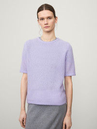 A luxurious staple, the Cecelia T-shirt is crafted in our featherlight silk cashmere composition to a feminine expression. The regular fit, hip-length silhouette features a round neck, short sleeves and ribbed trims that softly punctuate the frame. DETAILS Knit type: Silk Cashmere Gauge: 5 Weight: 125g Composition: 77% cashmere, 23% silk SIZE GUIDE * European sizing * Designed for a regular fit * The model is 179 cm/5’10.5” tall and wears a size 1 Our sizes: Size 0: XS Size 1: S-M Size 2: M-L