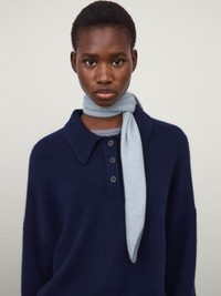 A neat shawl silhouette, the Chelsea scarf is crafted in our signature plain knit cashmere. With its contrast colour trim, it adds a subtle accent to cashmere pieces from across the collection. DETAILS Knit type: Plain Knit Gauge: 12 Weight: 50g Composition: 100% cashmere SIZE GUIDE The Chelsea scarf is 115 x 15 cm .
