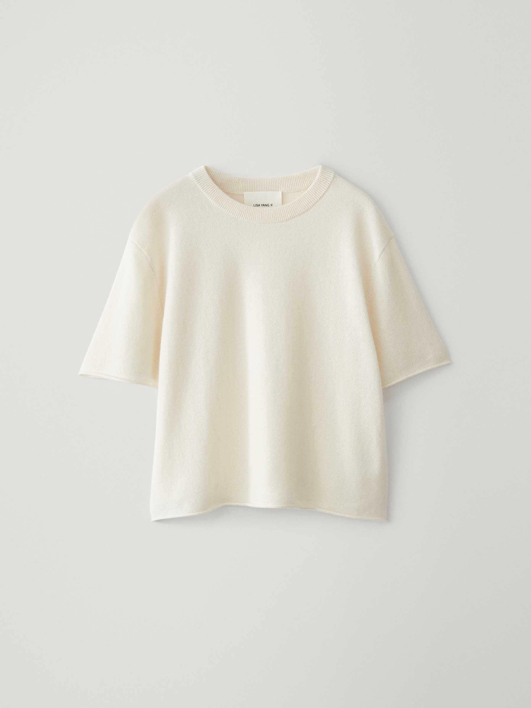 <!-- td {border: 1px solid #cccccc;}br {mso-data-placement:same-cell;} --> An everyday layering piece, the Cila T-shirt is crafted in soft, mid-weight cashmere for year-round wear. The slightly wide and cropped silhouette is framed by a crew neck, dropped shoulders and short sleeves, with a rolled hemline which crops at the hip. DETAILS Knit type: Plain Knit Gauge: 12 Weight: 155g Composition: 100% organic cashmere SIZE GUIDE * Based on European sizing * Designed for a relaxed fit * The model is 178 cm/5’10” tall and wears a size 1 Our sizes: Size 0: XS Size 1: S-M Size 2: M-L Cila's measurements: Size 0: * Body length: 52,5 cm * Chest: 54 cm Size 1: * Body length: 53,5 cm * Chest: 56 cm Size 2: * Body length: 54,5 cm * Chest: 58 cm