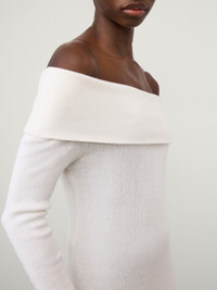 A day to evening silhouette, the Claudina top is crafted in a fine rib knit cotton cashmere hybrid. The close-fitting, hip-length silhouette features an off-shoulder design that accentuates the collarbones, full-length sleeves and tubular cuffs. DETAILS Knit type: Cotton Cashmere Gauge: 16 Weight: 255g Composition: 70% cotton, 30% cashmere SIZE GUIDE * European sizing * Designed for a regular fit * The model is 177 cm/5’9.5” tall and wears a size 1 Our sizes: Size 0: XS Size 1: S-M Size 2: M-L