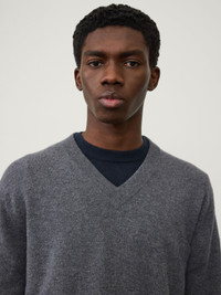 An everyday v-neck, the Clayton sweater is knitted in our seasonless, mid-weight cashmere for perennial wear. The regular fit, straight silhouette is framed by a v-neck, full-length sleeves and ribbed trims finished with a split bottom hem side detail. <!-- td {border: 1px solid #cccccc;}br {mso-data-placement:same-cell;} --> DETAILS Knit type: Plain Knit Gauge: 12 Weight: 230 Composition: 100% organic cashmere SIZE GUIDE * Designed for a regular fit * Based on European sizing * The model is 190 cm (6'2 feet) and wears a size 4 Our Sizes: Size 3: S-M Size 4: M-L Size 5: L-XL
