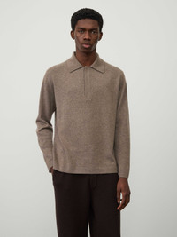 An everyday investment, the Emil sweater is knitted in our soft, mid-weight cashmere for year-round wear. The regular fit silhouette features a polo shirt neckline with a concealed half placket, full-length sleeves and a split bottom hem side detail. DETAILS Knit type: Plain Knit Gauge: 12 Weight: 300g Composition: 100% organic cashmere SIZE GUIDE * Designed for a regular fit * Based on European sizing * The model is 190 cm (6'2 feet) and wears a size 4 Our Sizes: Size 3: S-M Size 4: M-L Size 5: L-XL