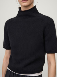 A transitional piece, the Fride sweater is crafted in our heavy knit, 5 gauge cashmere for a subtly textured feel. The regular fit, cropped silhouette has a standing mock neck, slim short sleeves and is finished with a rolled hem. DETAILS Knit type: Plain Knit Gauge: 5 Weight: 220g Composition: 100% cashmere SIZE GUIDE * Based on European sizing * Designed for a regular fit * The model is 179 cm/5’10.5” tall and wears a size 1 Our sizes: Size 0: XS Size 1: S-M Size 2: M-L