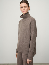 A play on proportions, the Heidi sweater is crafted in rich, heavy knit cashmere. The cocooning silhouette is made more inviting by an enveloping high neck, dropped shoulders, full-length sleeves and a hemline which falls to longer lengths at the back. DETAILS Knit type: Plain Knit Gauge: 7 Weight: 400g Composition: 100% cashmere SIZE GUIDE * European sizing * Designed for a relaxed fit * The model is 179 cm/5’10.5” tall and wears a size 1 Our sizes: Size 0: XS Size 1: S-M Size 2: M-L Heidi's measurements: Size 0: * Front length: 58 cm * Back length: 63,5 cm * Chest: 62,5 cm Size 1: * Front length: 60 cm * Back length: 65,5 cm * Chest: 64,5 cm Size 2: * Front length: 62 cm * Back length: 67,5 cm * Chest: 67 cm