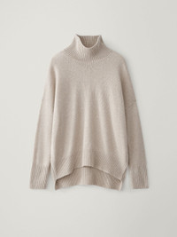 A play on proportions, the Heidi sweater is crafted in rich, heavy knit cashmere. The cocooning silhouette is made more inviting by an enveloping high neck, dropped shoulders, full-length sleeves and a hemline which falls to longer lengths at the back. DETAILS Knit type: Plain Knit Gauge: 7 Weight: 400g Composition: 100% cashmere SIZE GUIDE * European sizing * Designed for a relaxed fit * The model is 180 cm/5’11” tall and wears a size 1 Our sizes: Size 0: XS Size 1: S-M Size 2: M-L Heidi's measurements: Size 0: * Front length: 58 cm * Back length: 63,5 cm * Chest: 62,5 cm Size 1: * Front length: 60 cm * Back length: 65,5 cm * Chest: 64,5 cm Size 2: * Front length: 62 cm * Back length: 67,5 cm * Chest: 67 cm