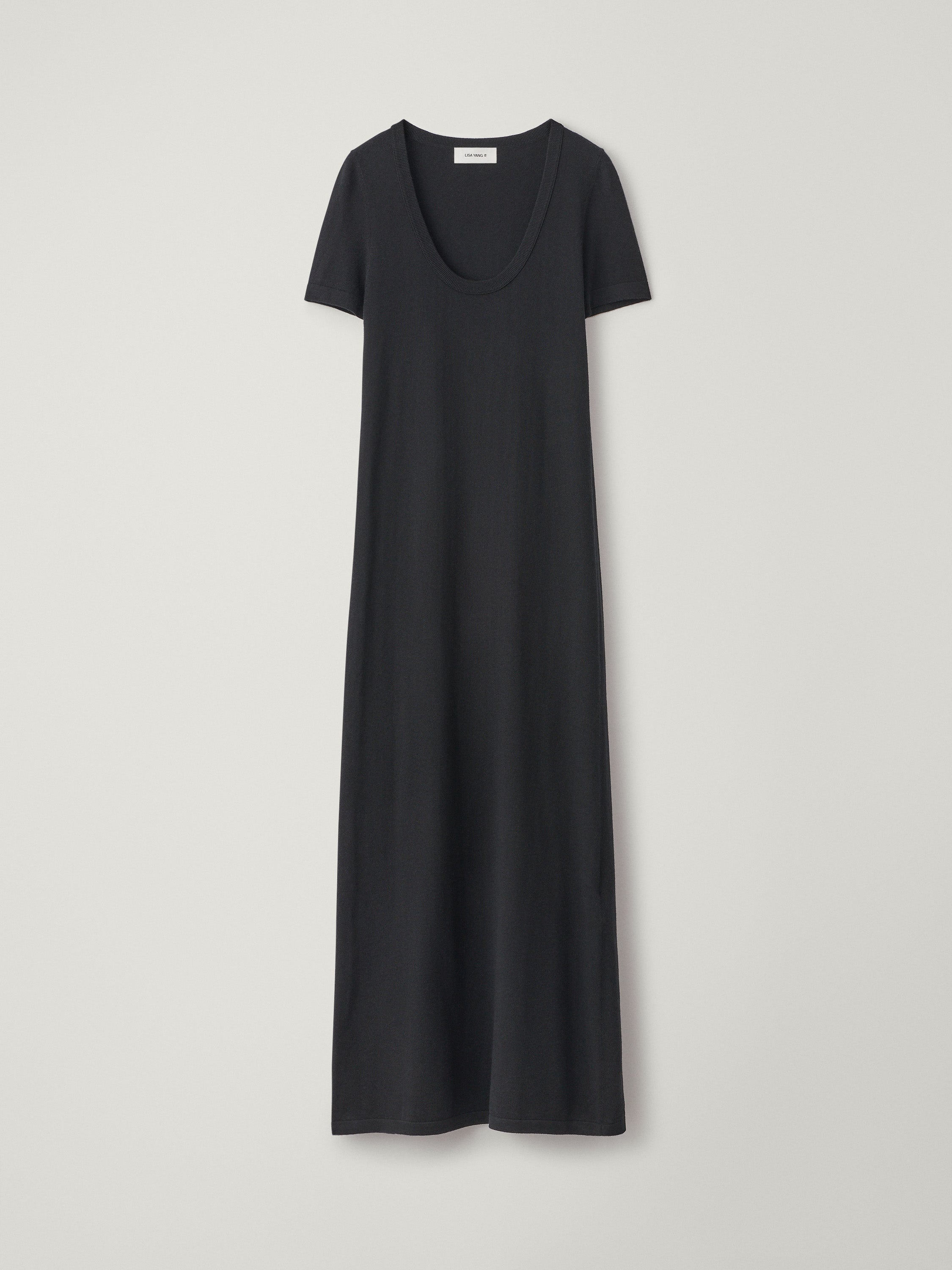 A draping silhouette, the Minne dress is crafted in our fine knit cotton cashmere composition – a sumptuous take on jersey. The regular fit, maxi length silhouette features a deep scoop neck, short sleeves, a tubular hem and ribbed trims. DETAILS Knit type: Cotton Cashmere Gauge: 16 Weight: 255g Composition: 70% cotton, 30% cashmere SIZE GUIDE * European sizing * Designed for a regular fit * The model is 179 cm/5’10.5” tall and wears a size 1 Our sizes: Size 0: XS Size 1: S-M Size 2: M-L