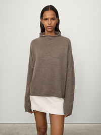 Sandy Sweater has a straight fit with dropped shoulders and a raw hem mock neck. The relaxed silhouette is knitted in our middleweight cashmere, falling effortlessly against your skin. DETAILS Knit type: Plain Knit Gauge: 7 Weight: 280g Composition: 100% organic cashmere SIZE GUIDE * European sizing * Designed for a regular fit * The model is 176 cm/5’9” tall and wears a size 1 Our sizes: Size 0: XS Size 1: S-M Size 2: M-L Sandy's measurements: Size 0: * Body length: 51 cm * Chest: 66 cm Size 1: * Body length: 53 cm * Chest: 68 cm Size 2: * Body length: 55 cm * Chest: 71 cm