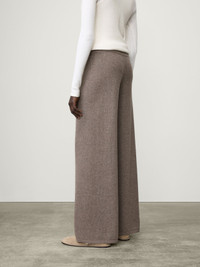 An everyday bottom, the Sofi trouser is knitted in soft, mid-weight cashmere for year-round wear. The relaxed silhouette falls from an elasticated mid waist secured with a drawstring into wide, full-length legs which drape along the ankles. DETAILS Knit type: Plain Knit Gauge: 12 Weight: 320g Composition: 100% cashmere SIZE GUIDE * Based on European sizing * Designed for a relaxed fit * The model is 177 cm/5’9.5” tall and wears a size 1 * Elastic drawstring waistband, high stretch Our sizes: Size 0: XS Size 1: S-M Size 2: M-L