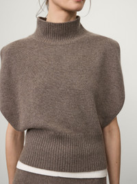 A feminine silhouette, the Zaya top is crafted in our signature plain knit cashmere with a light and lofty feel. The rounded frame falls from a ribbed standing high neck into a cinching hemline accentuated by wide ribs. The sleeveless design with open sides unveil a glimpse of skin in profile. DETAILS Knit type: Plain Knit Gauge: 7 Weight: 210g Composition: 100% cashmere SIZE GUIDE * Based on European sizing * Designed for a regular fit * The model is 179 cm/5’10.5” tall and wears a size 1 Our sizes: 0: XS 1: S-M 2: M-L