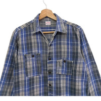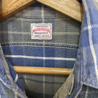 Vintage inspired tartan check shirt by Japanese repro masters Warehouse. Size Small Regular fit Japanese flannel fabric Double-needle construction Two button utility pockets Chain-stitched seams Cherry wood buttons 100% cotton Made in Japan ((P9))