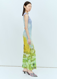 Blurred print maxi dress with raw hem. - Crewneck - Rear zip fastening - Graphic print - Seamless - 100% Nylon. Dry clean - Color: Purple - Code: A20673-CAI