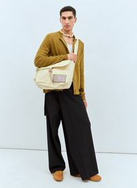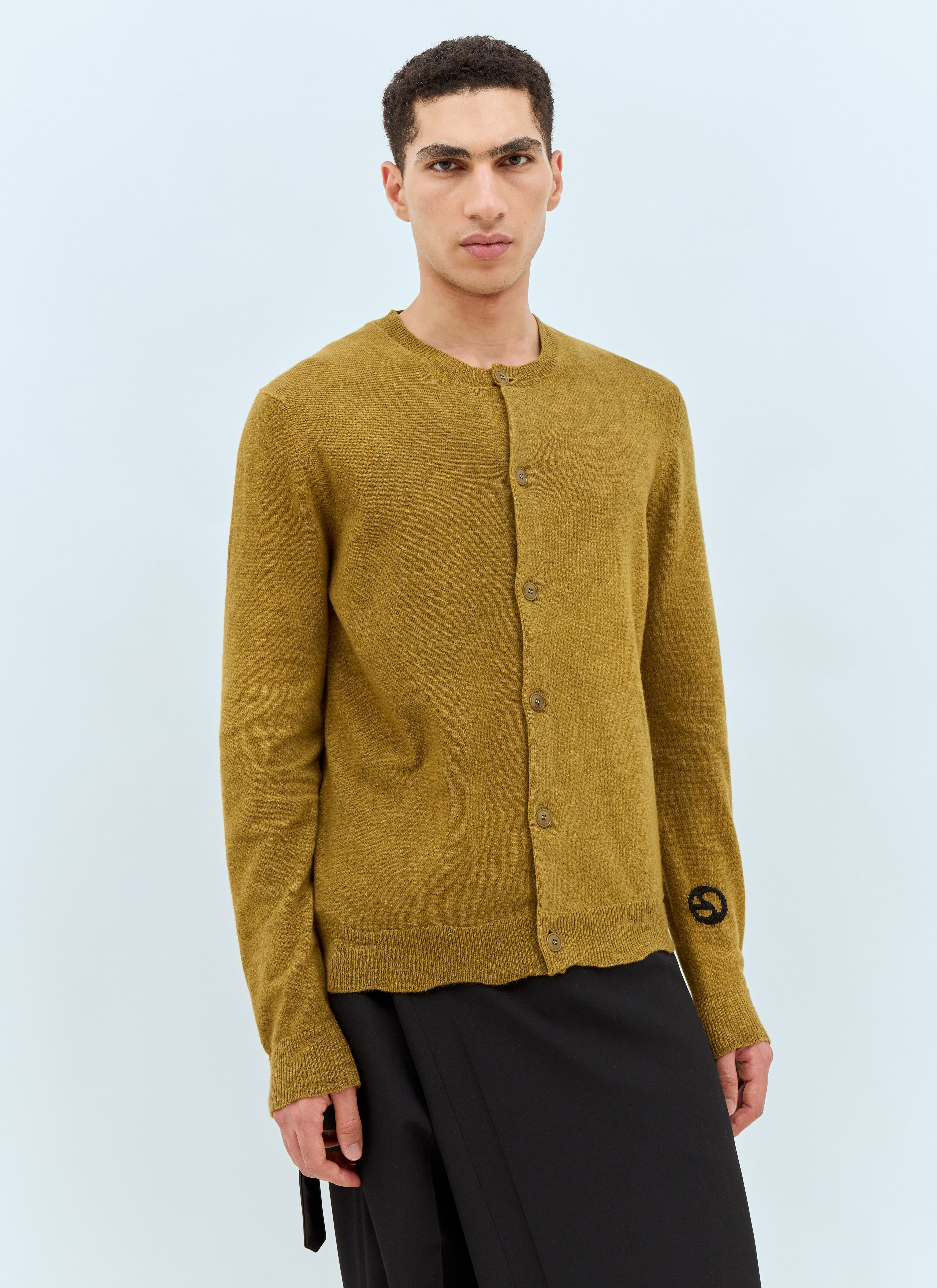 Crewneck cardigan in garment-dyed wool-and-cotton blend knit. - Crewneck - Front button fastening - Long sleeves - Logo embroidery at cuff - Made in Italy - 40% Wool, 40% Cotton, 20% Nylon - Color: Khaki - Code: B60323-DP3