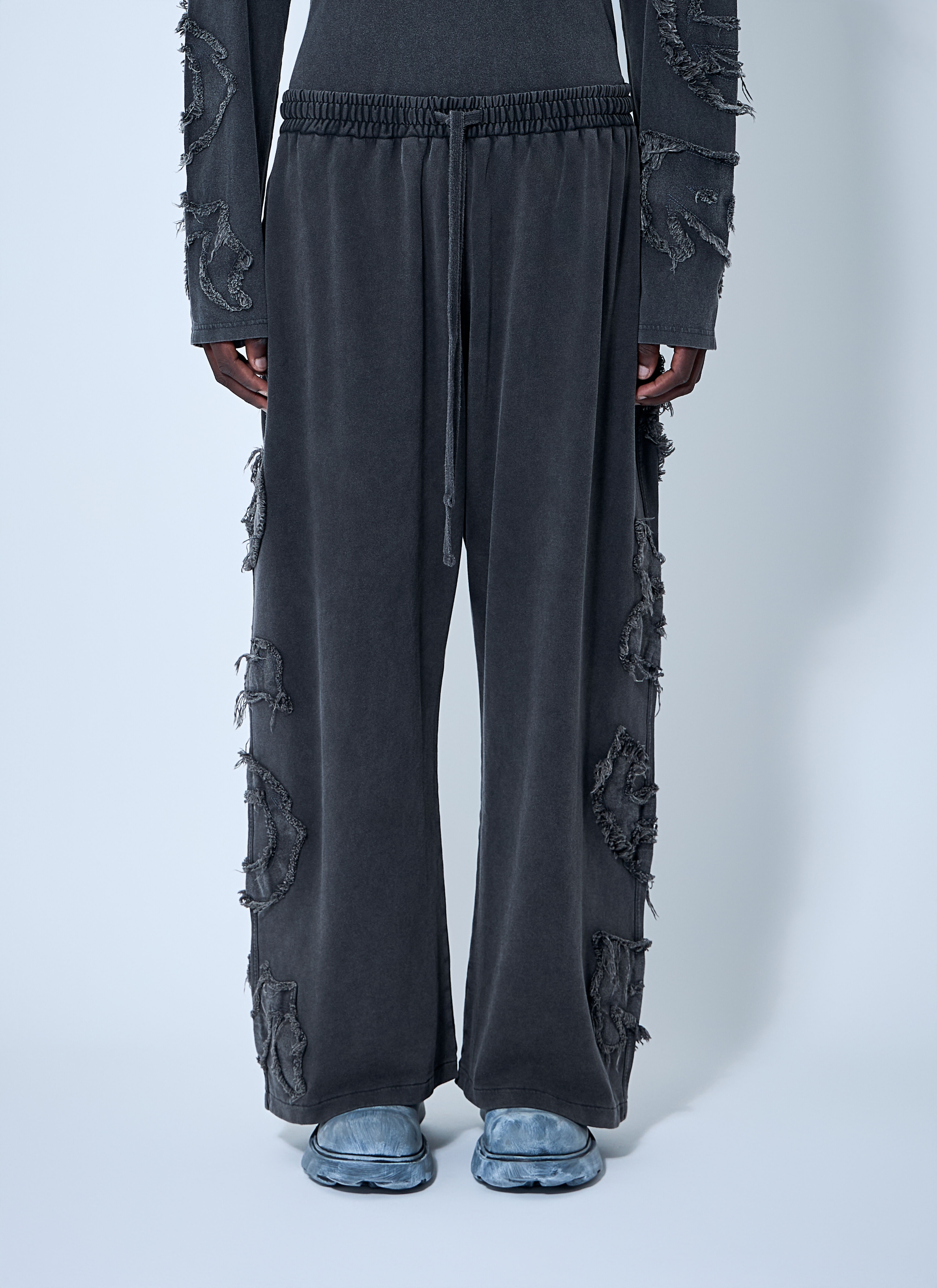 Cotton jersey track pants adorned with raw edge logo lettering at rear. - Mid rise - Elasticated waistband - Side slip pockets - Rear logo motif - 100% Cotton. Hand wash - Color: Black - Code: BK0678-BM0