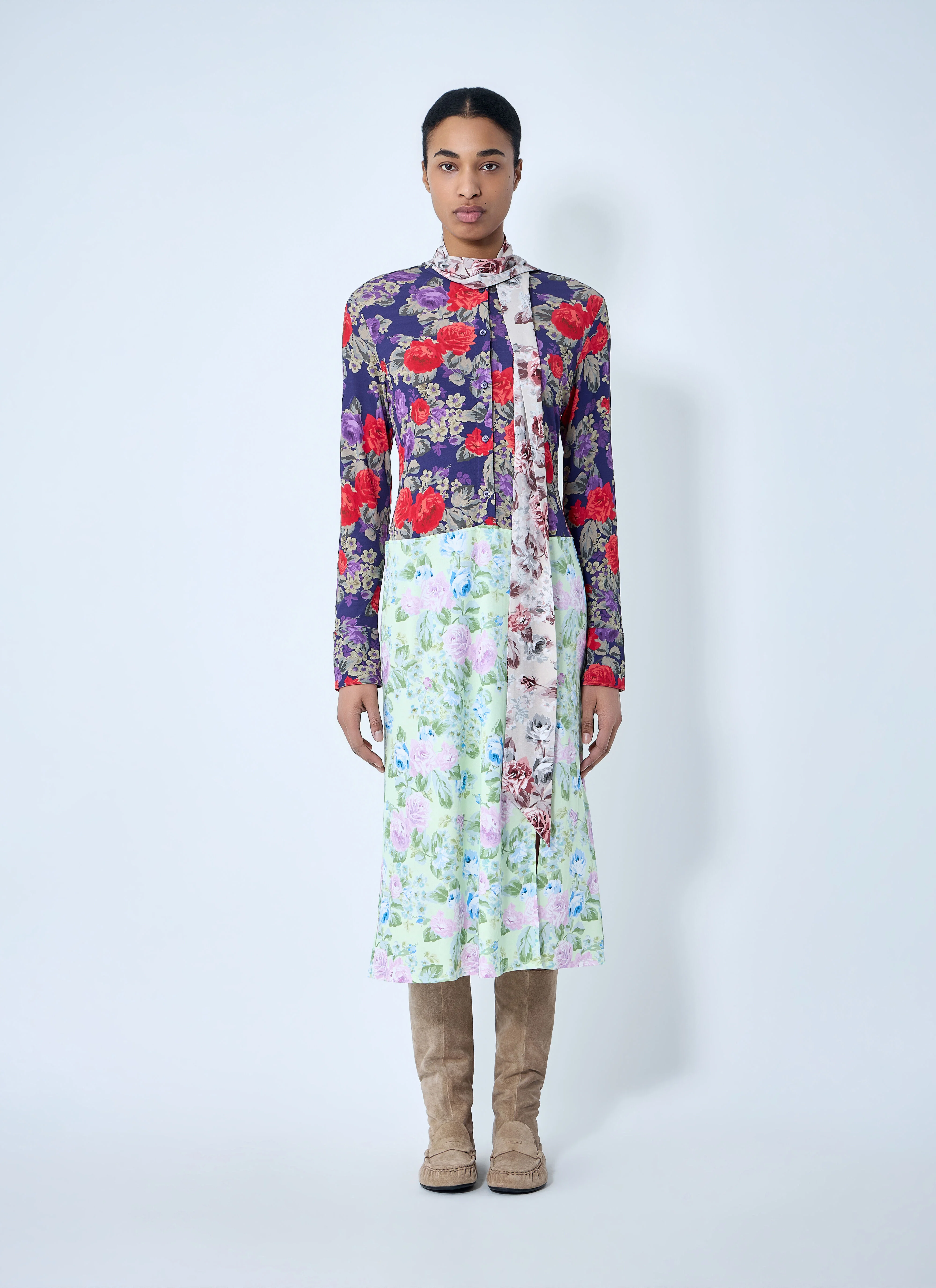 Long sleeve midi dress with tie neck detail. - High neck - Long sleeves - Midi length - Button front - Floral print - 100% Preferred Viscose - Color: Purple - Code: A20895-AMI