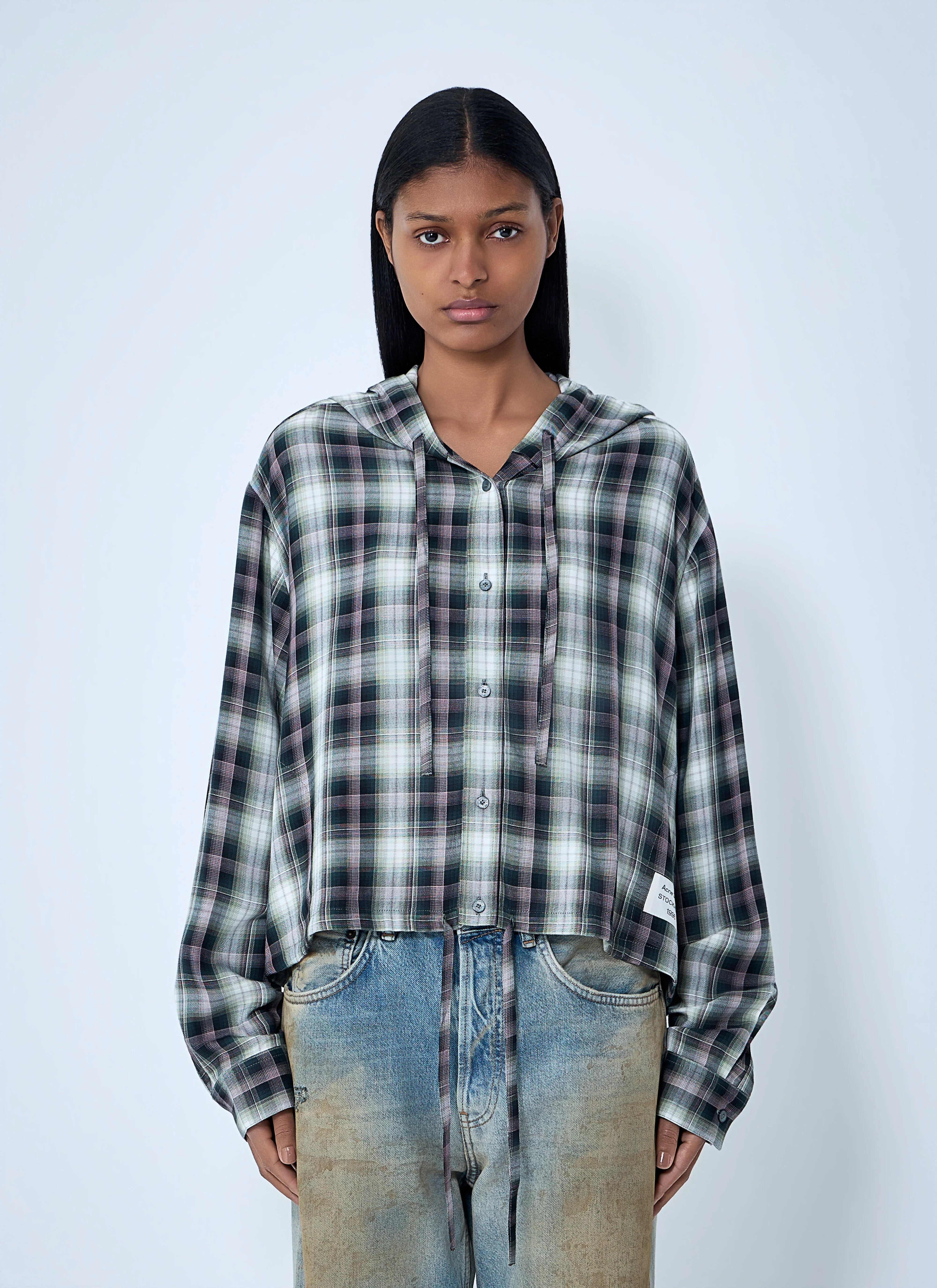 Check shirt with hood and button fastening. - Drawstring hood - Button front closure - Long sleeves - 100% Viscose. Dry clean - Color: Green - Code: AC0736-AIG