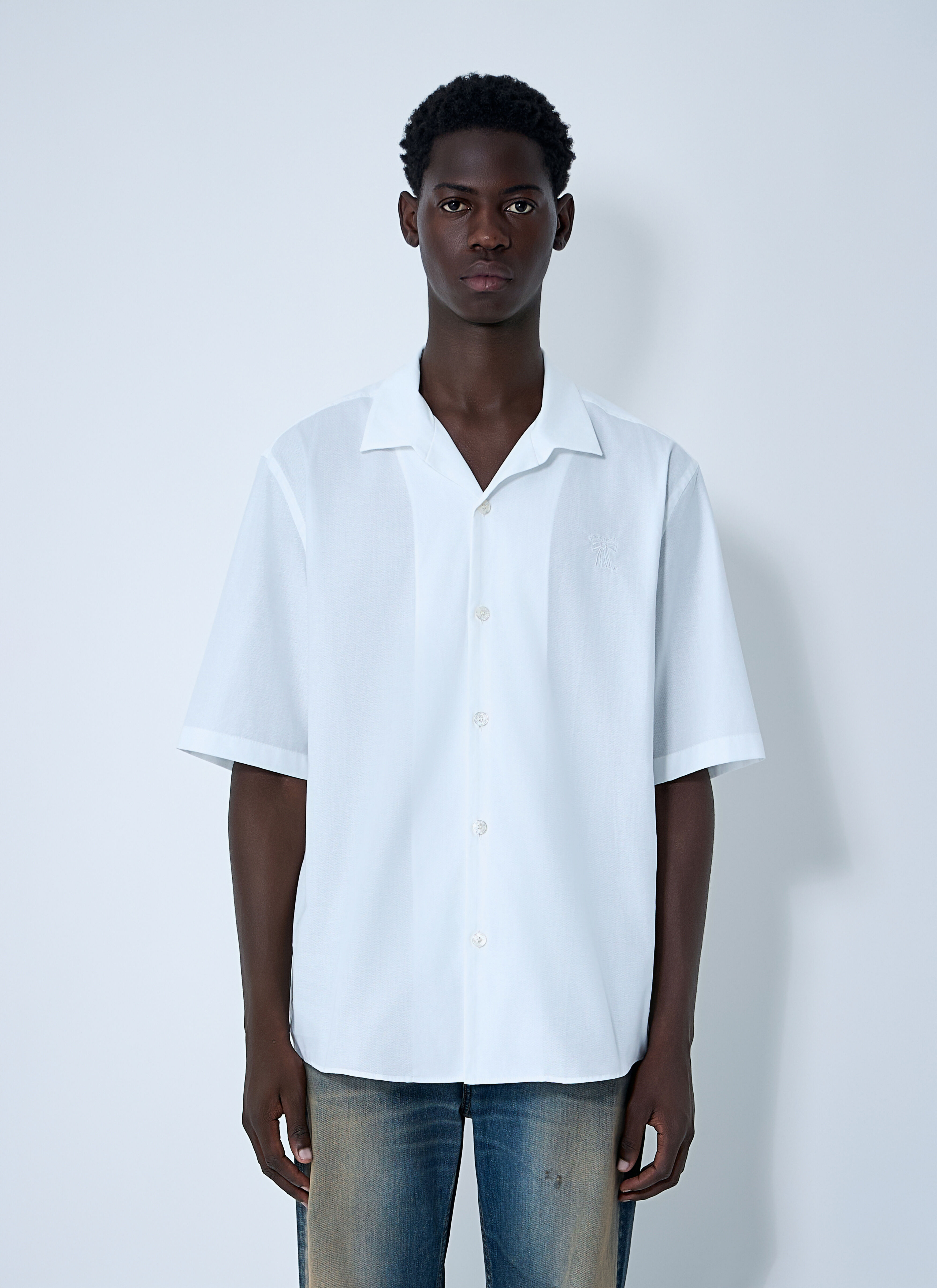 Button-down shirt in cotton poplin. - Camp collar - Front button fastening - Short sleeves - Chest logo embroidery - 100% Cotton. Hand wash - Color: White - Code: BB0634-100