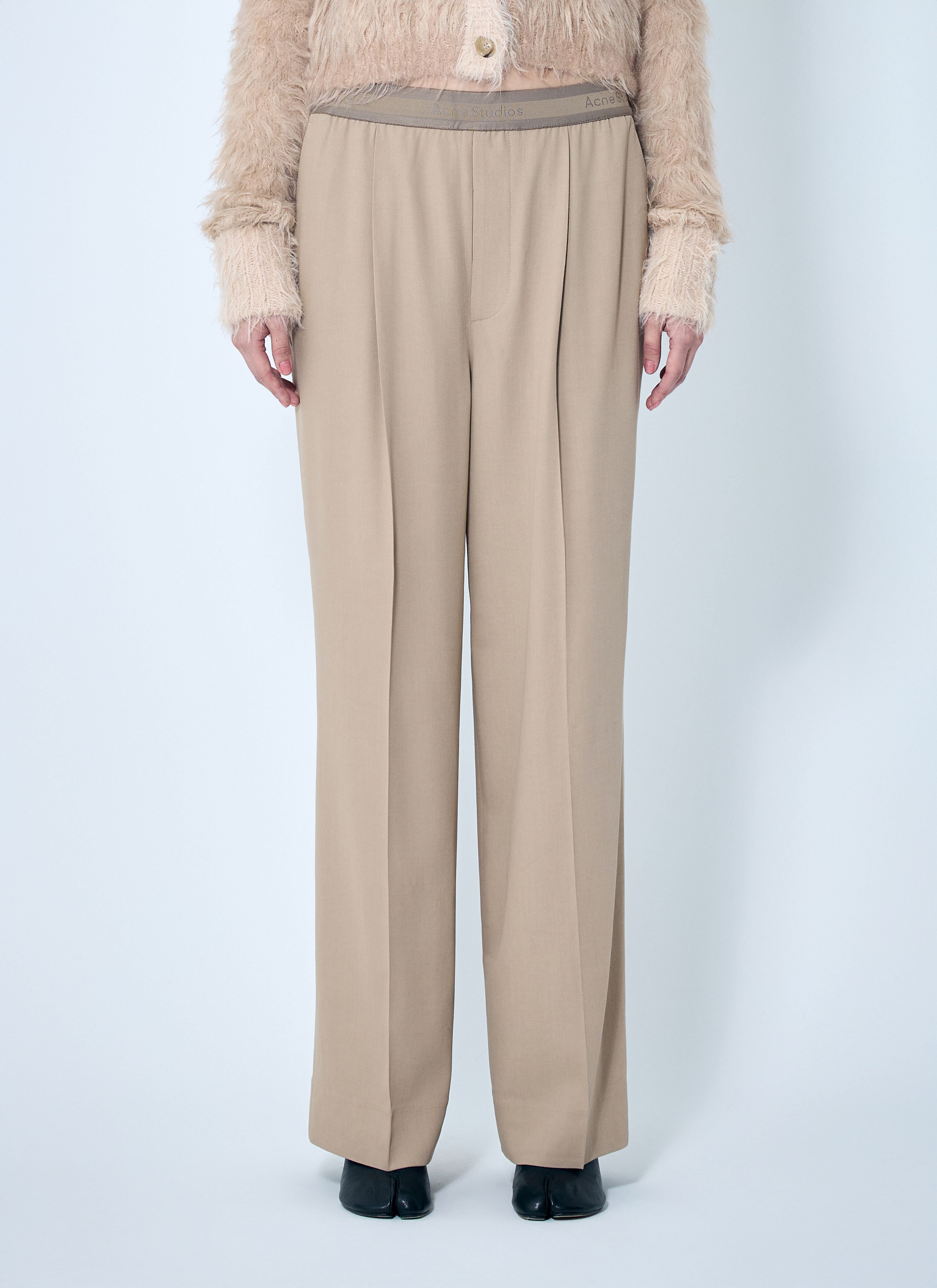 Twill pants with logo-tape elasticated waistband. - High rise - Elasticated waistband - Side slip pockets - Rear jet pockets - 65% Viscose, 35% Wool. Dry clean - Color: Beige - Code: AK0826-DFJ