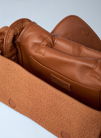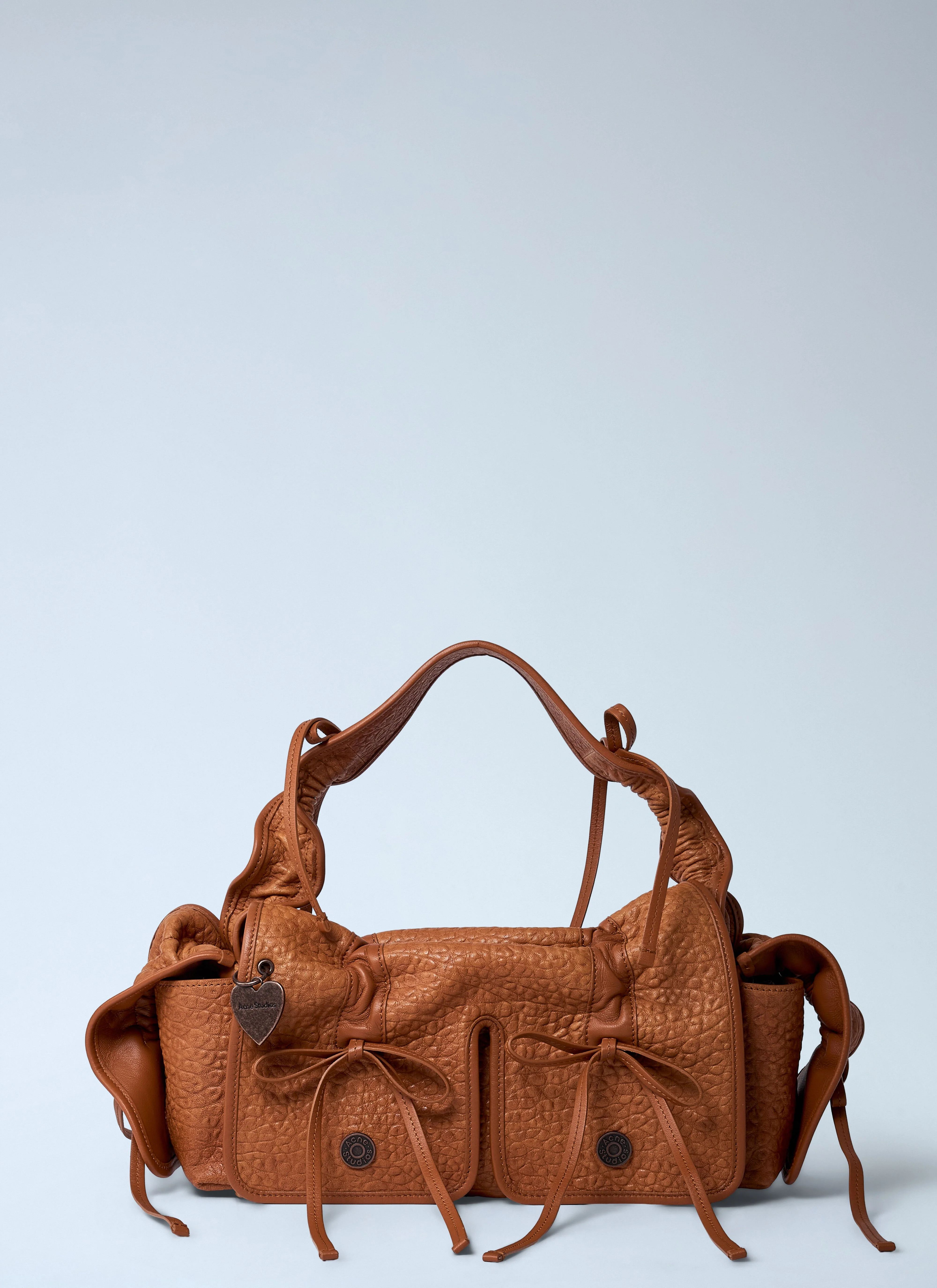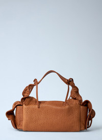 Multipocket bag is crafted from grained bubble leather adorned with laced knot details. - Top handle - Flap-over closure with knot fastening - Front patch pockets - Side patch pockets - One main compartment - 100% Leather - Color: Brown - Code: A10425-295