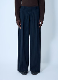 Pasant Wide-Leg Pinstriped Twill Suit Trousers Navy
