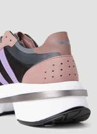 - Technical fabrication in a faux leather finish - Round toe - Lace-up fastening - Side signature stripe motif - Contrast panels - Perforated motif at heel - Platform rubber sole - 100% Technical Fabrication - Color: Pink - Code: ID6815