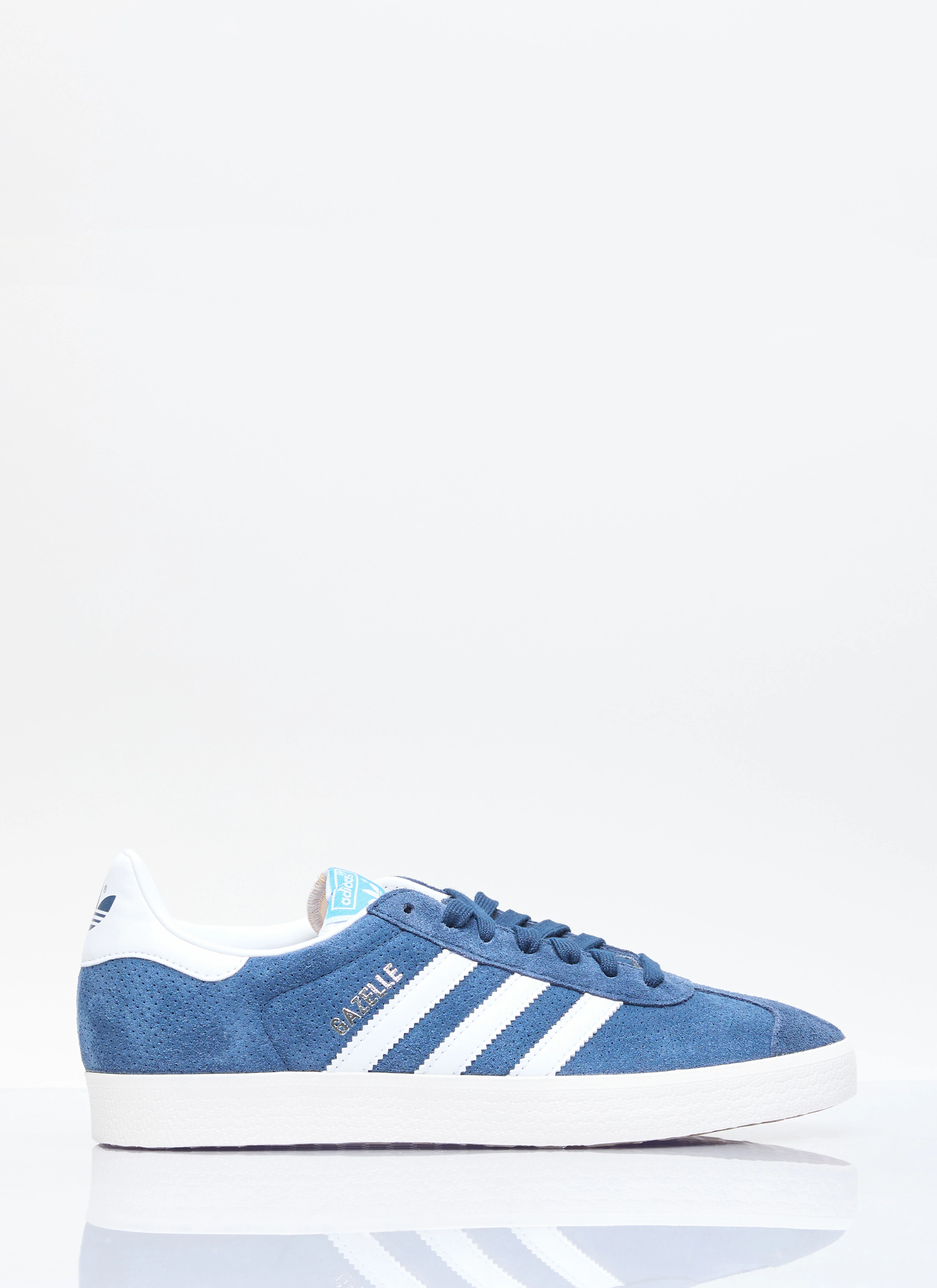 Gazelle sneakers with perforated upper. - Round toe - Lace-up fastening - Logo patch at tongue - Signature stripes at side - Model print at side - Panel construction - Logo print at heel cap - 100% Technical Blend Fabrication - Color: Navy - Code: IG6212