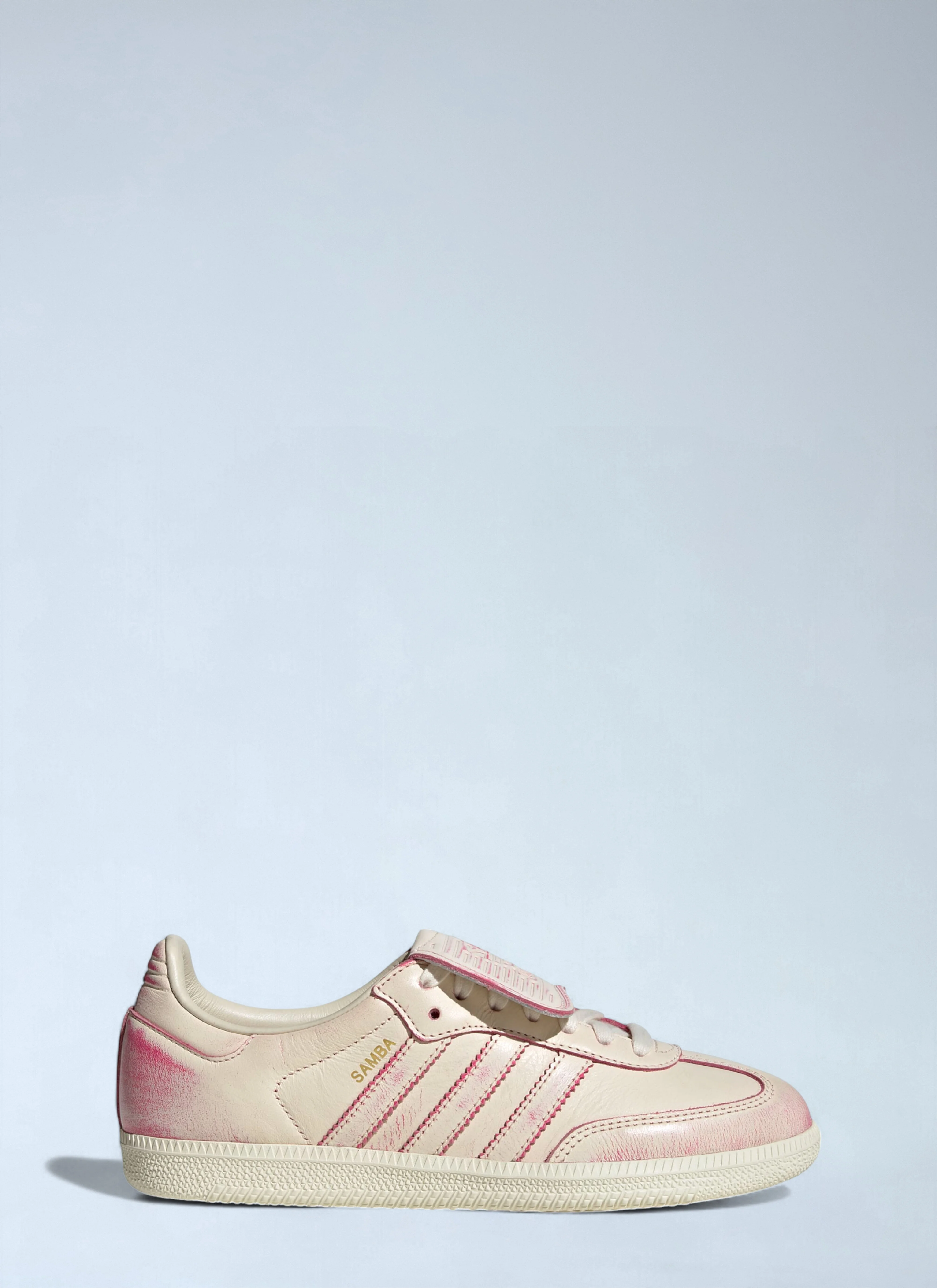 Leather Samba LT sneakers in smooth-grain finish. - Round toe - Lace-up fastening - Fold-over tongue construction with logo motif - Signature stripes at side - Model print at side - Logo print at heel cap - Panel construction - 100% Leather - Color: Cream - Code: JR5998