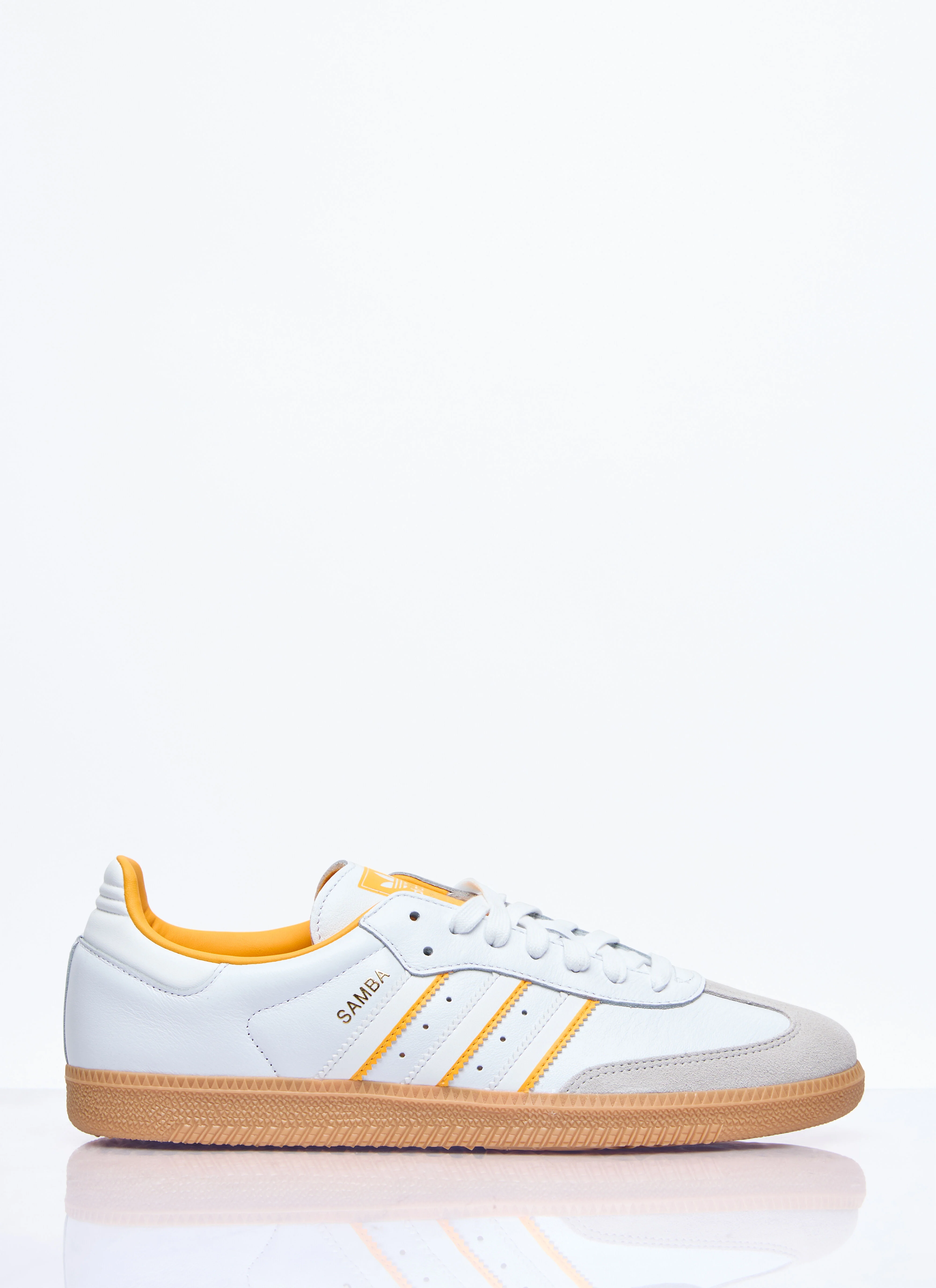 Samba OG sneakers with suede toe panel. - Round toe - Lace-up fastening - Logo print at tongue - Signature stripes at side - Model print at side - Panel construction - Contrast sole - 100% Technical Blend Fabrication - Color: White - Code: ID1479