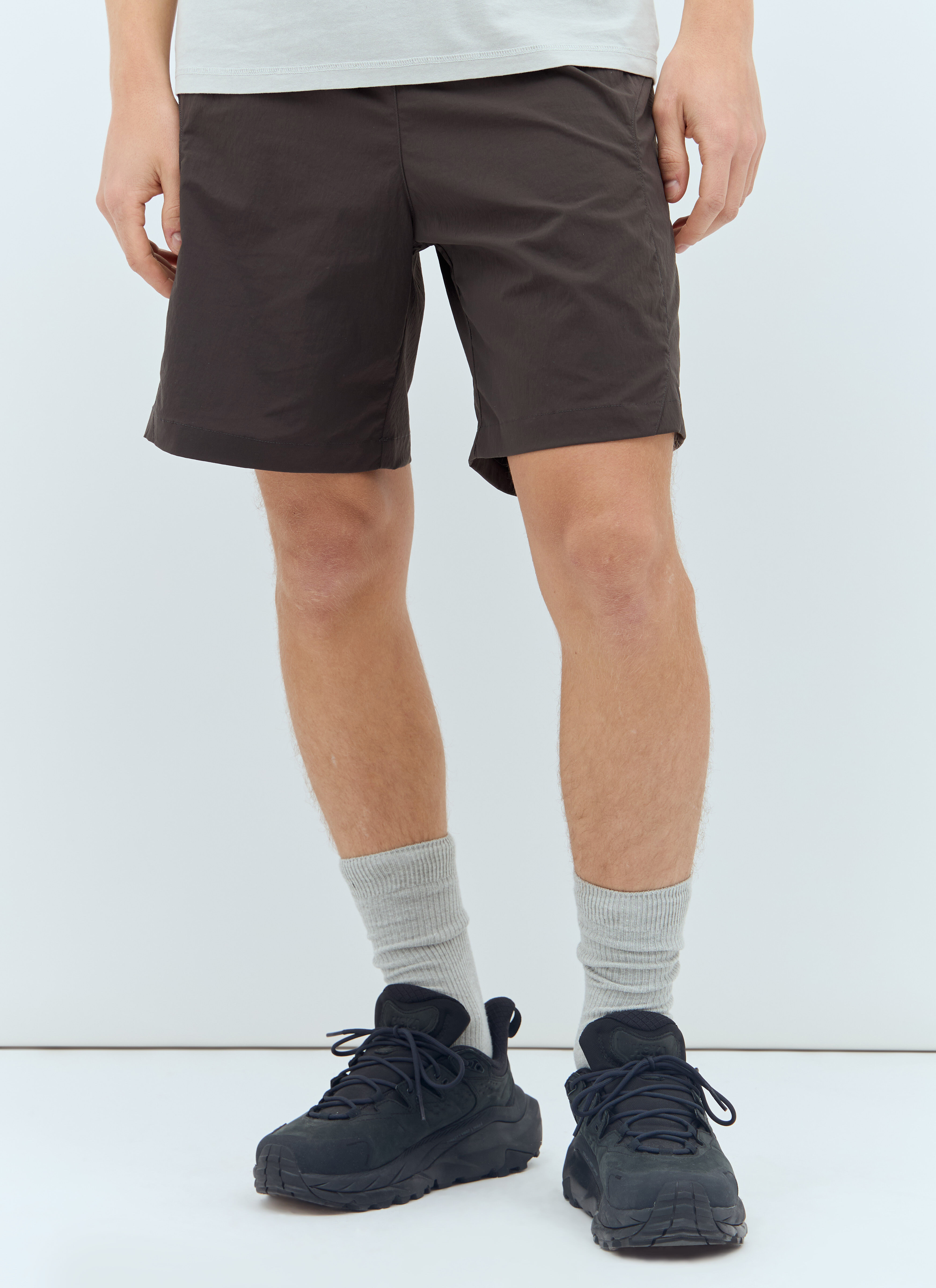 Flex track shorts in lightweight weave with rear zip pocket. - Mid rise - Elasticated waistband - Front logo print - Panel construction - Rear zip pocket - 94% Cotton, 6% Elastane. Machine wash cold - Color: Brown - Code: SS24S01SB