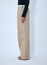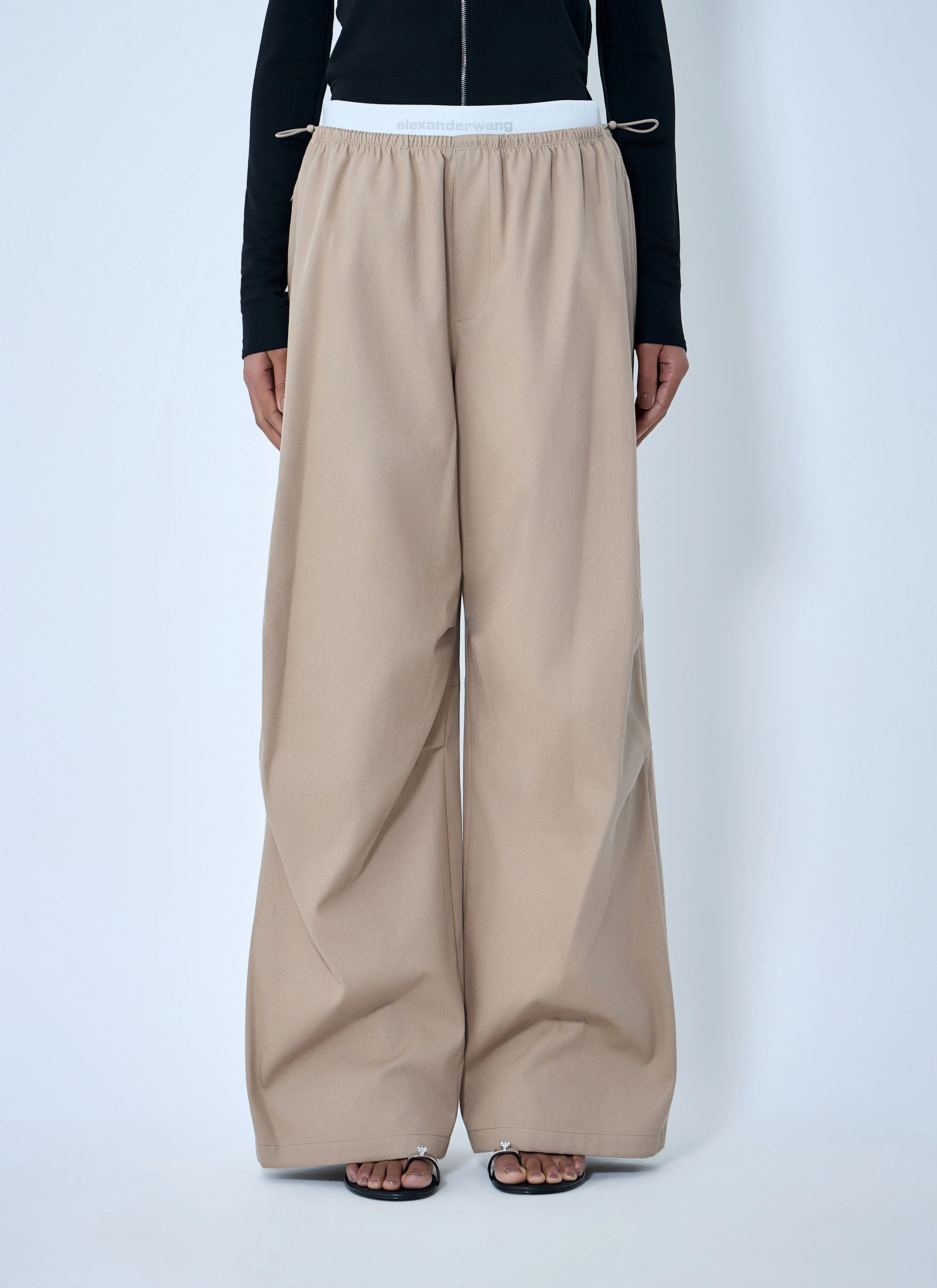 Wide-leg pants with elasticated waistband and drawstring adjustment. - Elasticated waistband - Drawstring adjustment - Wide-leg silhouette - 100% Cotton. Dry clean - Color: Beige - Code: 1WC1264969 240B