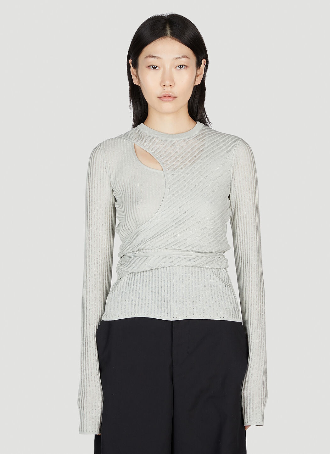 Cotton knit draped top. - Crewneck - Rear self-tie fastening - Long sleeves - Front cut out - Wrap design - All-over plisse motif - 100% Cotton. Dry clean - Color: Grey - Code: B0011167-KN015-045