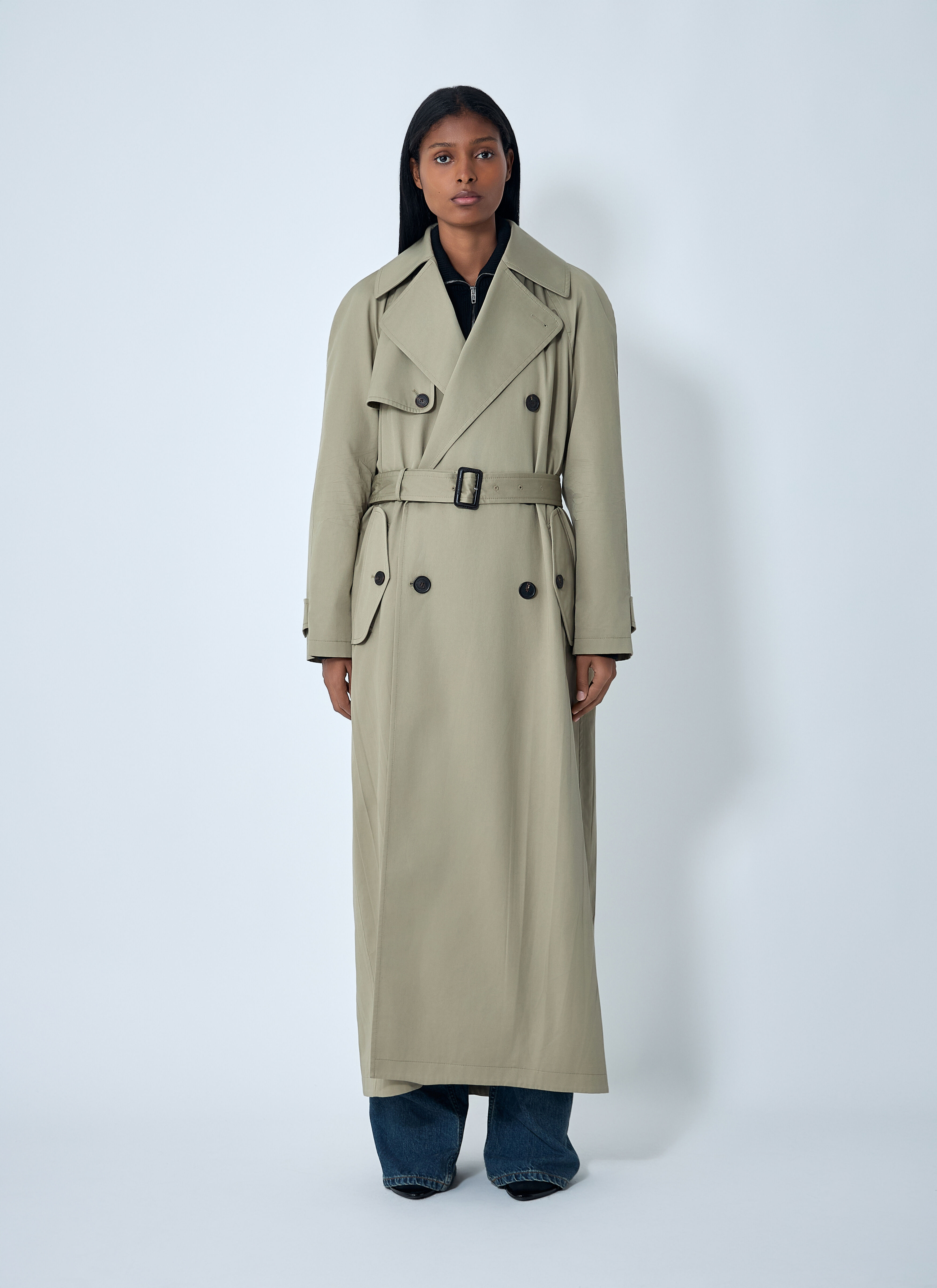 Classic trench coat in cotton gabardine. - Notched lapels - Double-breasted button fastening - Long sleeves - Adjustable cuffs - Detachable belt - Side flap pockets - Closed rear vent - 100% Cotton. Dry clean - Color: Beige - Code: 850872 TSP13 9772