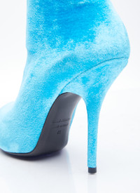 Knife boots in fluid velvet jersey. - Elongated pointed toe - Tone-on-tone covered heel - Stiletto heel - Made in Italy - 79% Viscose, 19% Polyamide, 2% Elastane. Wipe with a soft cloth - Color: Blue - Code: 742881 W8MA1 4000