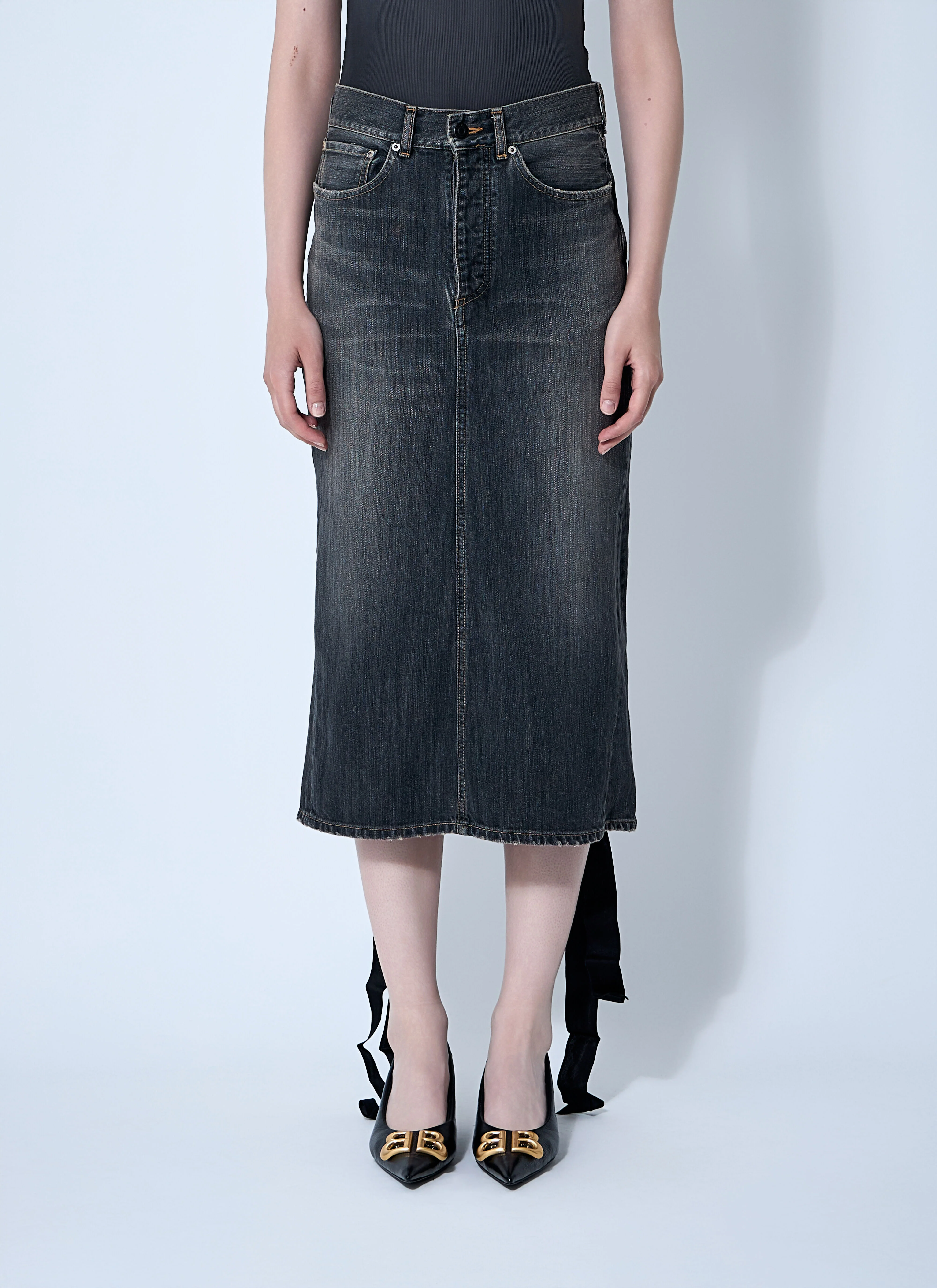 Denim skirt with rear lace-up construction. - Mid rise - Top-button and zip-fly fastening - Belt loops - Five pockets - Rear lace-up construction - Panel construction - 100% Cotton. Dry clean - Color: Dark Grey - Code: 831713 TSW67 1441