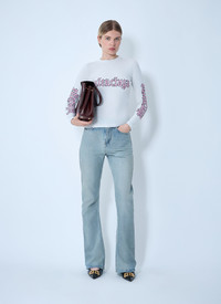 Logo motif T-shirt in cotton jersey. - Crewneck - Long sleeves - All-over Logo motif - 93% Cotton, 7% Elastane. Machine wash cold - Color: White - Code: 826465 TSVW6 9012
