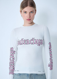 Women's Blackletter Script Fitted Long Sleeve T-shirt in Dirty White
