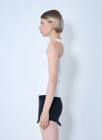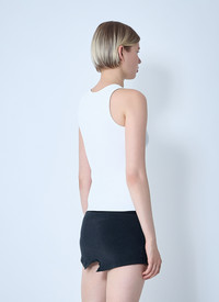 Knit tank top with front logo motif. - Scoopneck - Camisole sleeves - Ribbed - 84% Viscose, 16% Polyester. Hand wash - Color: White - Code: 835500 T5231 9040