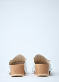 Perforated clogs with wooden heel and side logo motif. - Round toe - Side logo motif - Wood heel - 100% Leather - Color: White - Code: 827403 WB260 9000