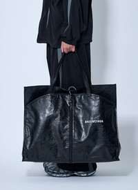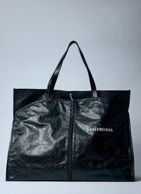 Leather in crinkle finish with front logo print. - Twin handles - Interior snap-button fastening - Top hook fastening - Front logo motif - One main compartment - Interior zip fastening pocket - Made in Italy - 100% Leather - Color: Black - Code: 811607 2ABH6 1090
