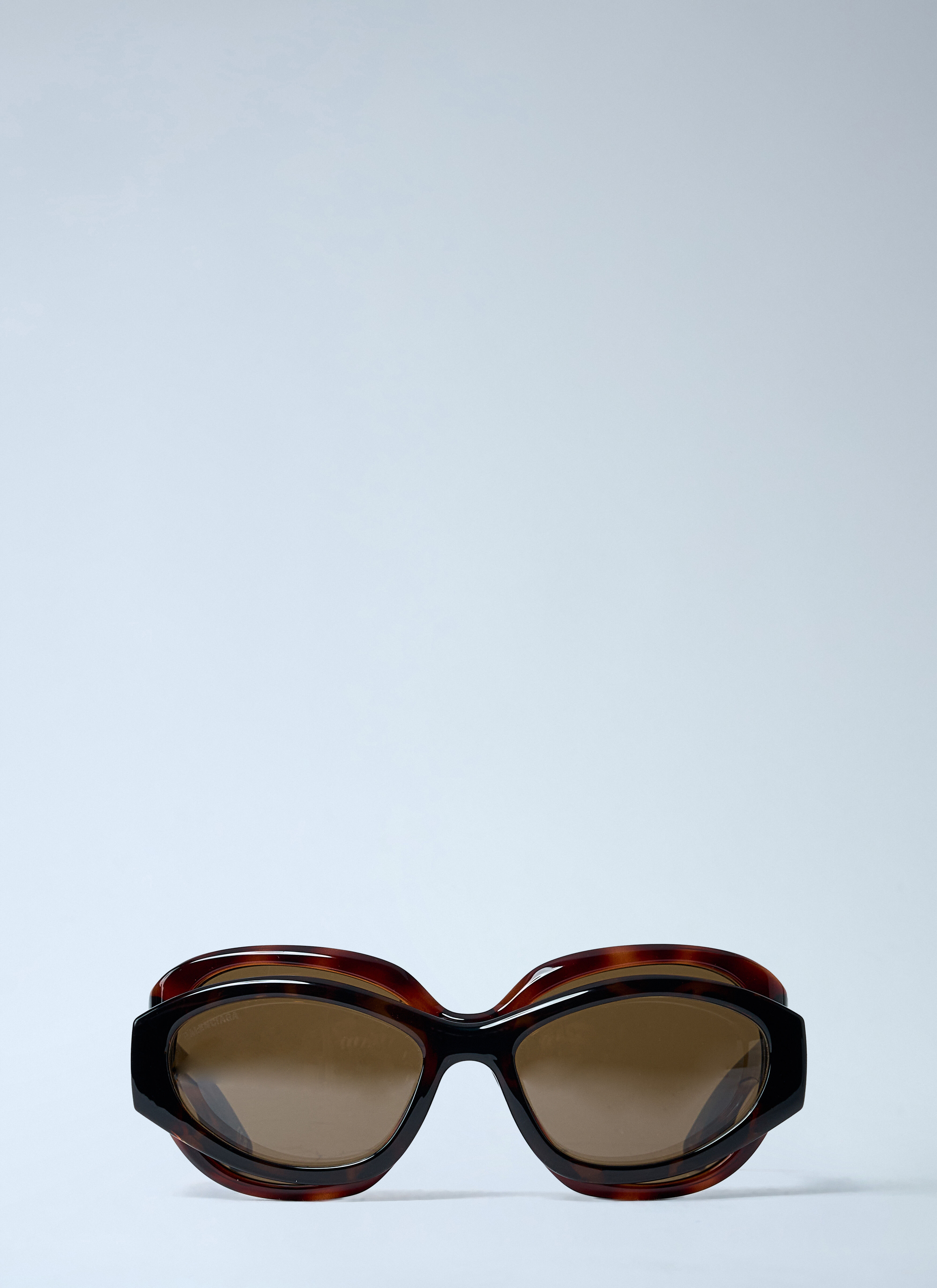 Superbusy round sunglasses with layered design. - Round frames - Tinted lenses - Side logo motif - 100% Technical Fabrication Blend - Color: Dark Brown - Code: 837798 T0007 2385